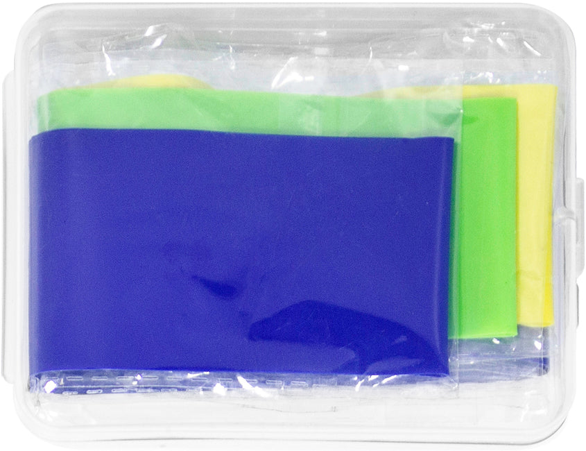 1 SET de tres bandas de diferentes colores y diferentes resistencias para hacer gimnasia. La banda verde tiene una resistencia de 2,27 kg, la banda azul 4,54 kg, la banda amarilla 6,80 kg. Ideal para hacer sentadillas, trabajar bíceps, tríceps, fortalecer glúteos y muchos ejercicios más. Presentación en caja plástica transparente de 11,5 x 9,2 x 2,8 cm.