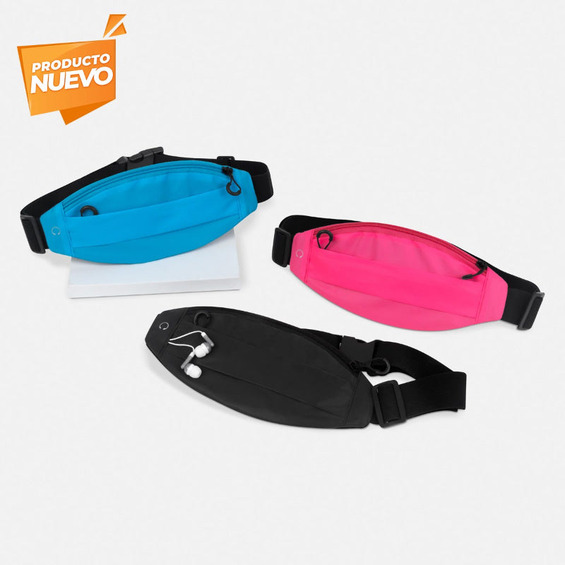 Cangurera deportiva perfecta para los amantes del running. Su compartimento principal tiene un espacio para smartphone e incluye una apertura para audífonos con cable. El compartimento frontal es ideal para objetos pequeños. Su correa ajustable con broche de plástico te permite llevarla cómodamente en la cintura sin afectar tu movilidad durante el entrenamiento al aire libre.