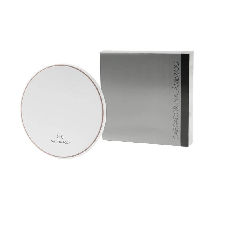 Cargador inalámbrico "fast charge". Velocidad máxima de carga 15W. Se enciende luz color verde cuando está en reposo y luz color azul cuando está en proceso de carga. Incluye cable auxiliar tipo C y caja individual.