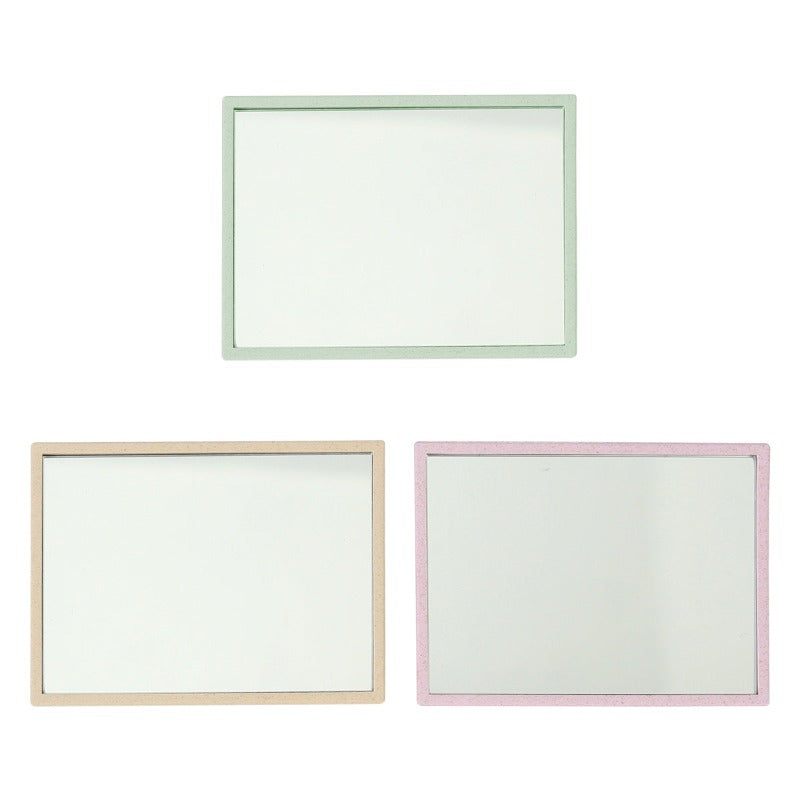 Espejo rectangular fabricado en fibra de trigo y plástico PP. Gracias a su tamaño, es ideal para llevarlo contigo todos los días.