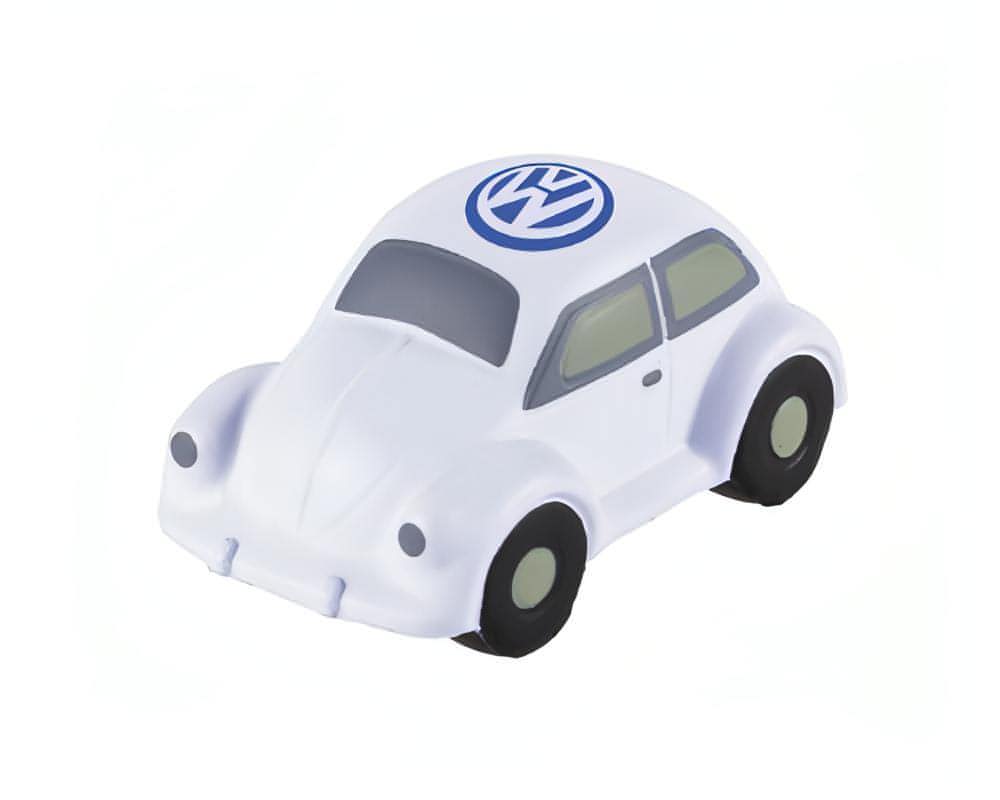Figura de poliuretano en forma de auto compacto, ventanas, llantas y faros impresos.