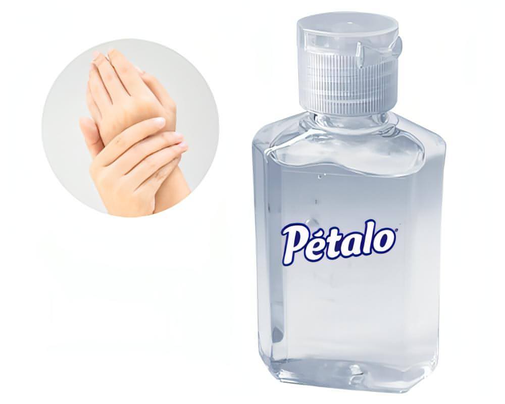 Gel antibacterial en botella de plástico, con tapa abre fácil que permite usarlo en cualquier lugar. Cap 60 ml.