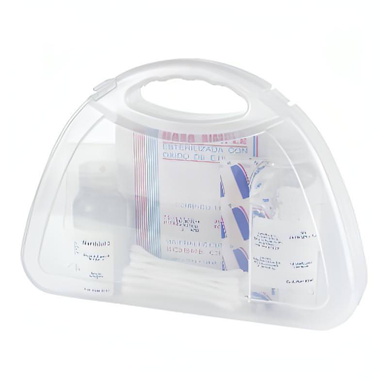 Incluye gel antibacterial de 60 ml., 1 cubre boca, 2 gasas, 3 curitas, 20 cotonetes, 1 mertodol de 40 ml.
