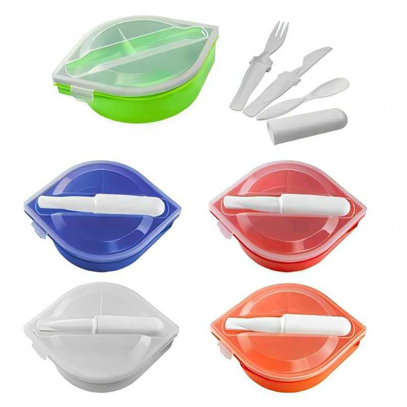 Lonchera incluye portacubiertos con cuchara, tenedor y cuchillo. 3 Compartimentos.