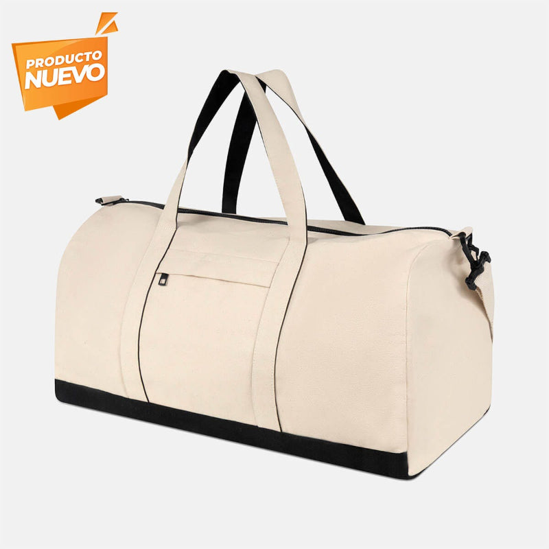 Malteta con su compartimento principal con cierre destaca por su tamaño súper amplio, perfecto para llevar todo lo necesario con comodidad. Incluye asas de mano para un fácil agarre y una práctica asa para hombro removible, sujeta con un broche de plástico para mayor seguridad. Además, cuenta con un bolsillo frontal con cierre que brinda acceso rápido a objetos pequeños o esenciales. Esta maleta ecológica está fabricada con material algodón, es la compañera ideal para viajes o escapadas de fin de semana.