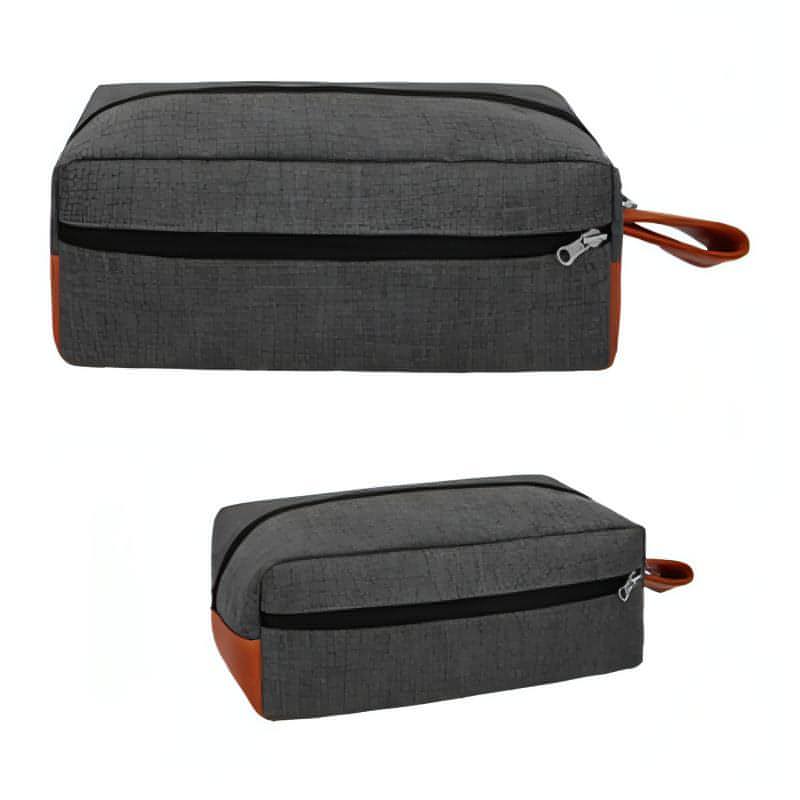 Neceser con interior reforzado, compartimento frontal, base y correa de curpiel.