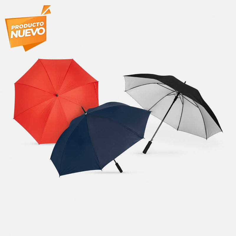 Paraguas de 8 paneles y mango de EVA. Sistema de abertura automática. Incluye recubrimiento interno como protección UV.