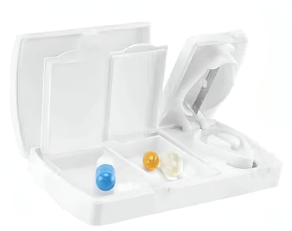 Pastillero con corta pastillas y 2 compartimentos separables.