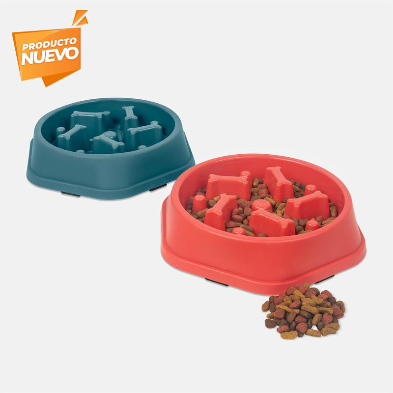 Plato de alimentación lenta para mascotas, fabricado en plástico de grado alimenticio. Ideal para perros pequeños y medianos. Su diseño interior con figuras de hueso ayuda a reducir la velocidad al comer, favoreciendo una digestión saludable. Su base cuenta con seis almohadillas antideslizantes, que evitan deslizamientos durante su uso.
