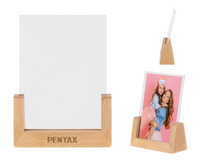 Portarretratos con base de madera y acrílico doble para fotografías de 10 x 14 cm. Presentación: caja individual de kraft.