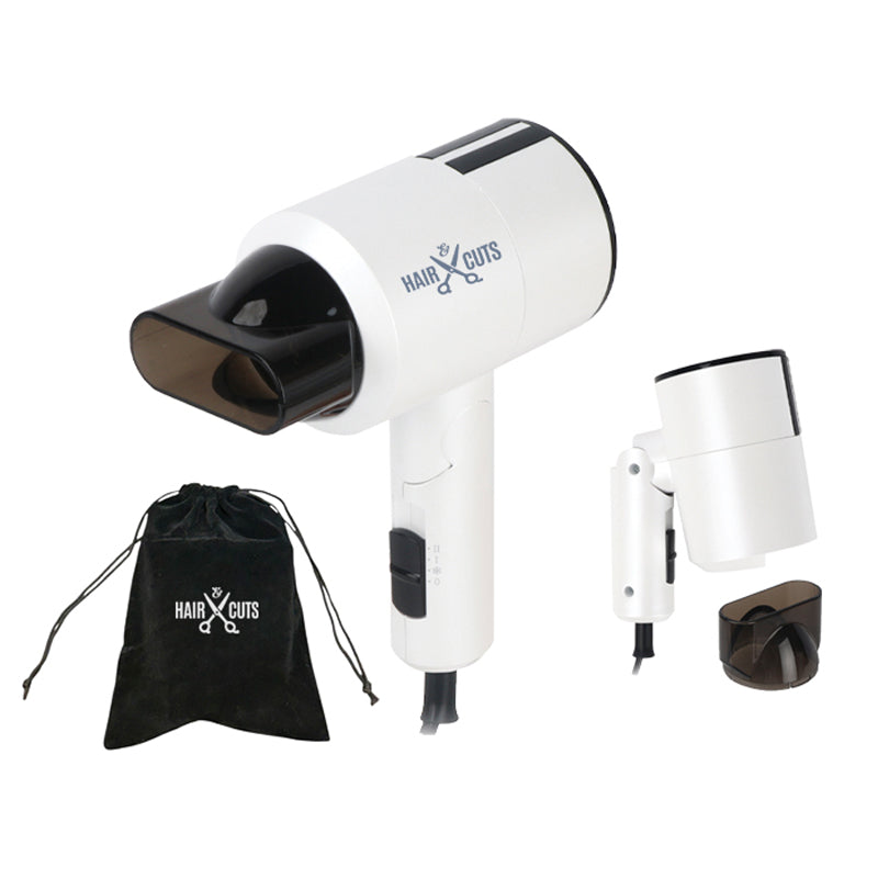 Secadora plegable de cabello portátil con botón deslizable de encendido y apagado, se ajusta a 3 velocidades: 1 con aire frio y 2 potencias de aire caliente. Incluye boquilla removible para alaciado del cabello.