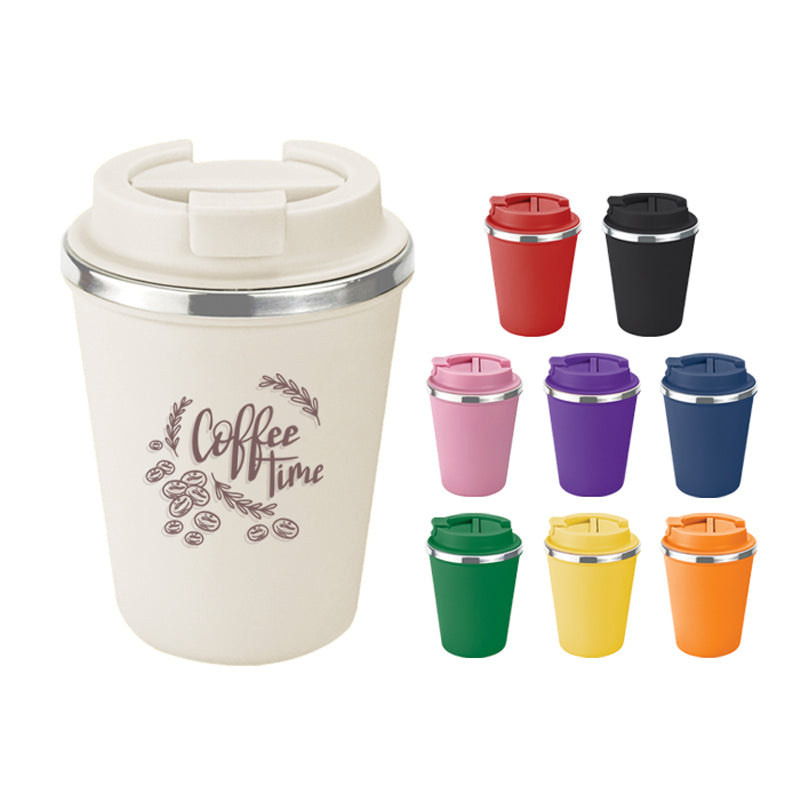 Termo con exterior de plástico e interior de acero inoxidable. Cuenta con tapa de rosca anti derrames con seguro abatible. CAP. 350 ml. Presentación: Caja en color blanco.