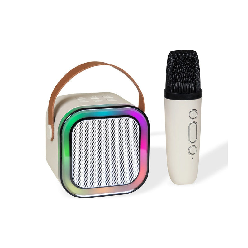 Bocina con tecnología bluetooth 5.3. Potencia 5 W. Batería recargable con capacidad de 800 mAh que otorga un tiempo de reproducción de 3 a 4 horas. Alcance de conexión de 10 metros. Incluye marco de luz LED con botón independiente para cambiar o ajustar el efecto o color. Además, agrega un micrófono que se sincroniza automáticamente a la bocina, lo que te permitirá cantar tus canciones favoritas y divertirte ya que se puede modificar la agudeza de las voces. Puerto de conexión tipo C y USB, conexión para cable auxiliar 3.5 y ranura para tarjeta TF. Incluye cable con conector tipo C y caja individual.