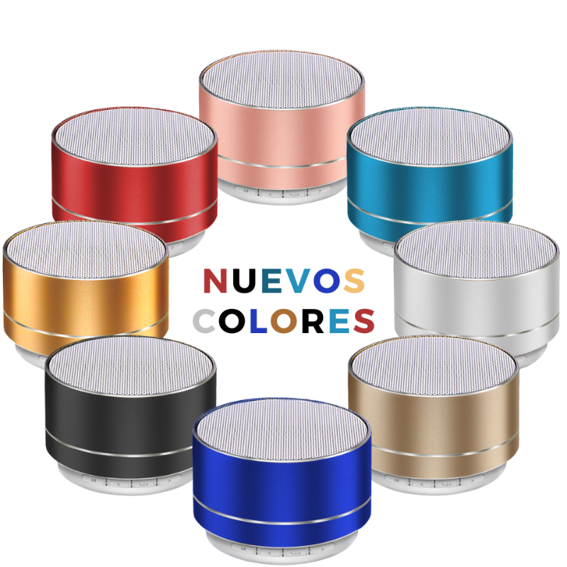 Bocina Bluetooth con batería recargable, metálica con luces LED integradas. Conexión Bluetooth y entrada para tarjeta TF (micro USB). Función de llamadas manos libres. Compatible con dispositivos móviles y computadoras. Rango de conexión 10 metros.