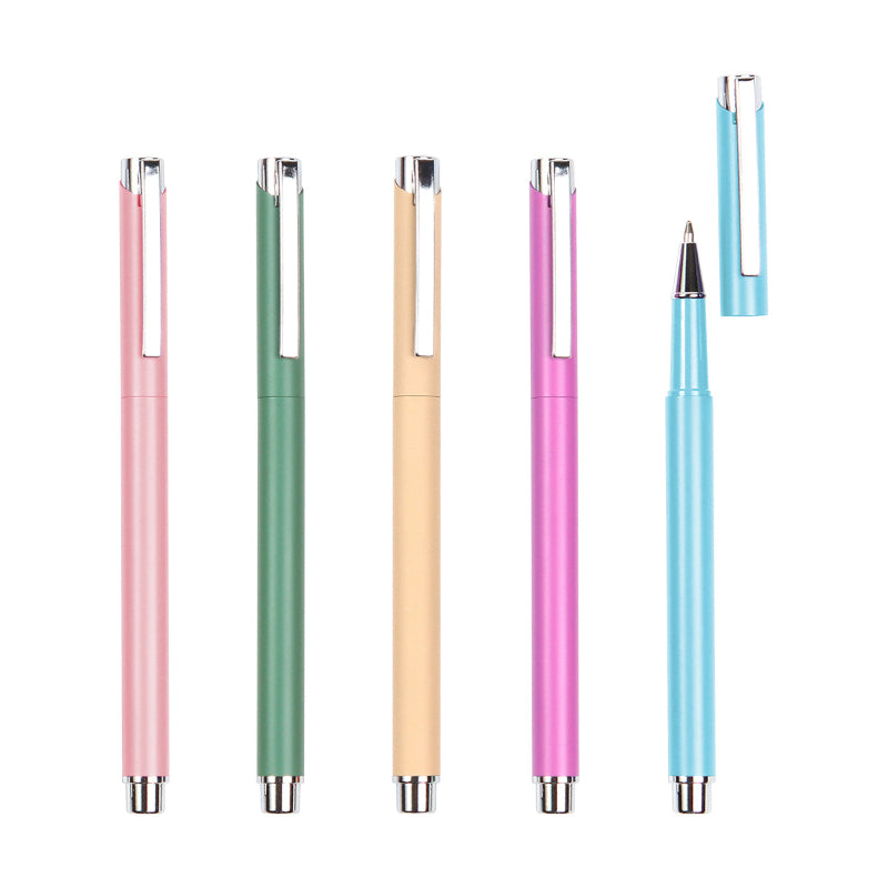 Bolígrafo fabricado con barril de aluminio acabado mate metálico y clip de metal cromo plateado con acción cap off. Tinta de escritura negra. Incluye caja individual de cartón.