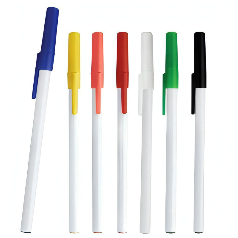 Bolígrafo de plástico con tapa de color.