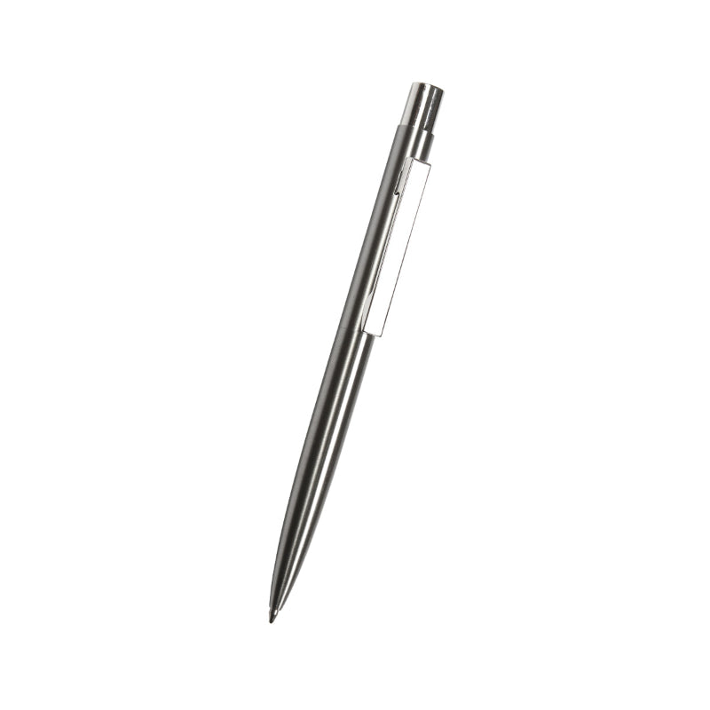 Bolígrafo fabricado en acero inoxidable reciclado, con acción de empuje. Incluye caja individual de cartón. Su diseño moderno y duradero, junto con la inclusión de una caja individual de cartón, hacen de este bolígrafo una elección elegante y práctica para tu uso diario o como un regalo consciente del medio ambiente.
