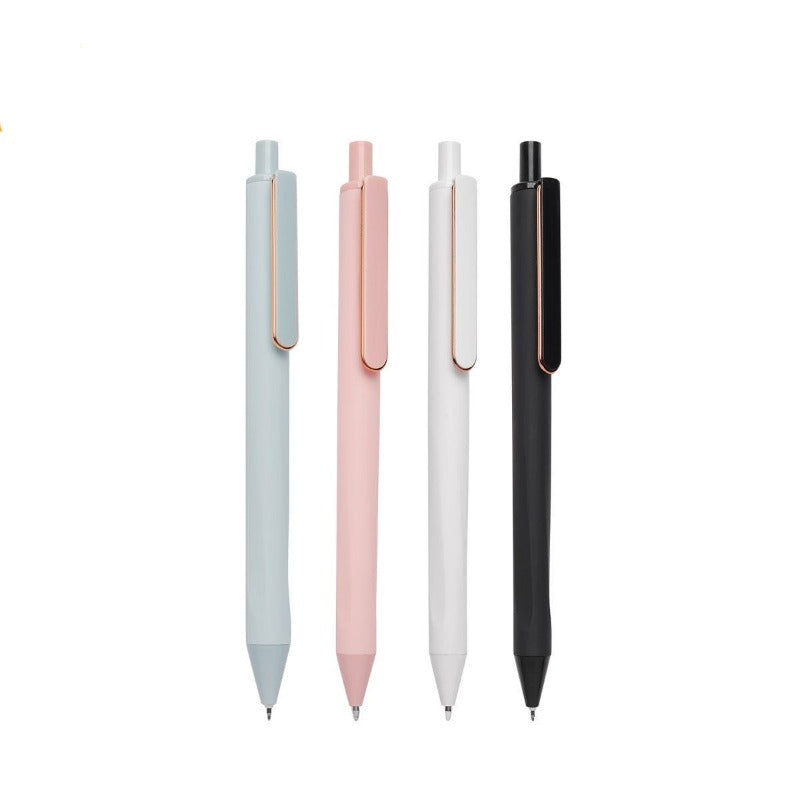 Bolígrafo con terminado tipo rubber. Mecanismo pulsador. Su diseño inferior permite un mejor agarre.