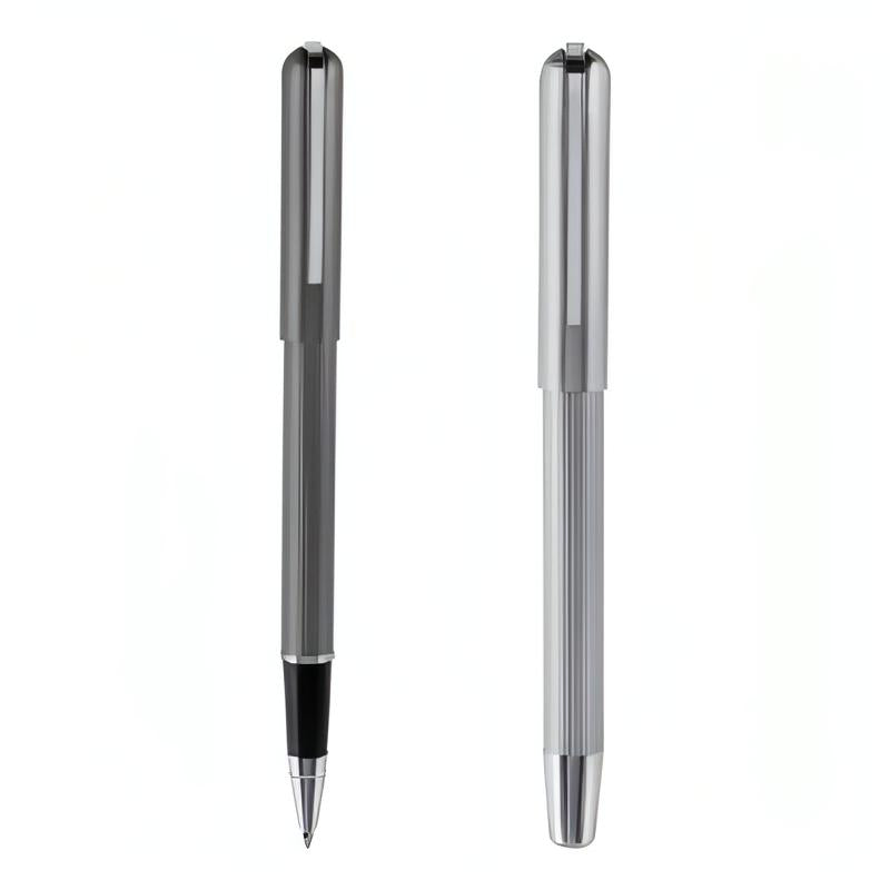 Bolígrafo roller ball con tapón. Incluye estuche.