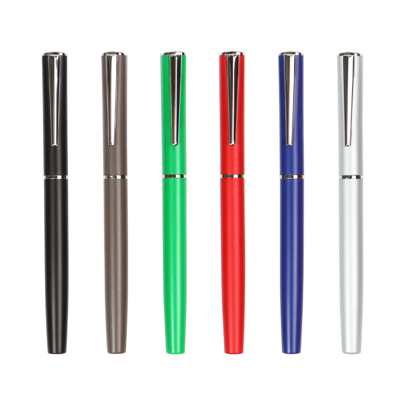 Bolígrafo fabricado en aluminio. Incluye tapa y clip metálico. Tinta de escritura azul.