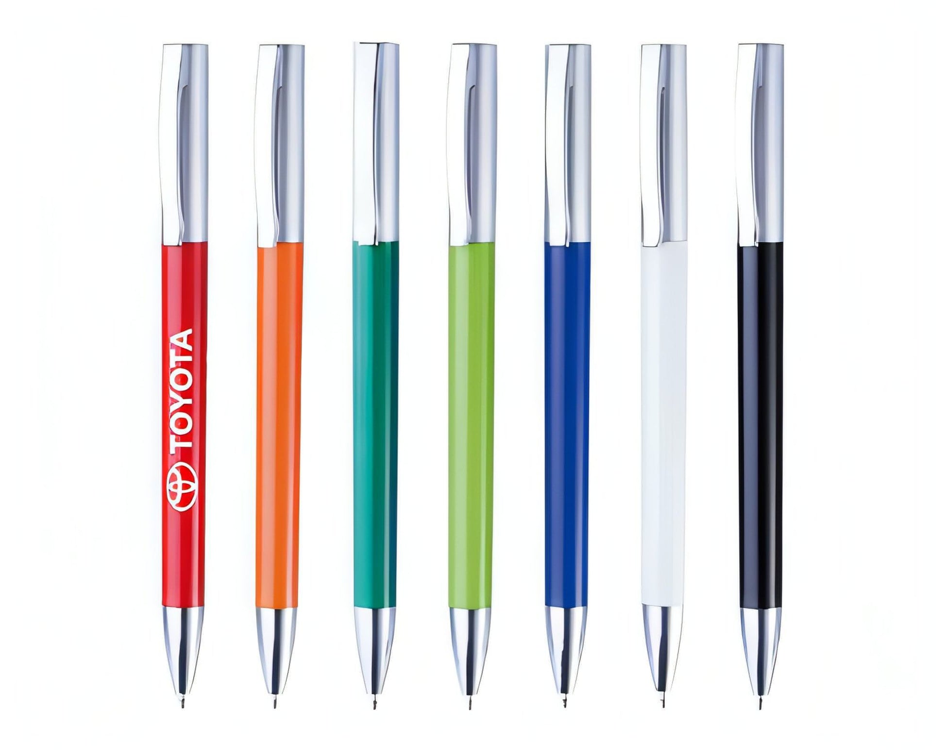 Bolígrafo plástico con clip de metal, retráctil. Un artículo con mucho estilo.