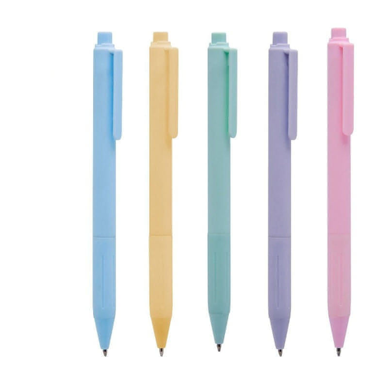 Bolígrafo en colores pastel. Grip de silicón antiderrapante. Mecanismo pulsador.