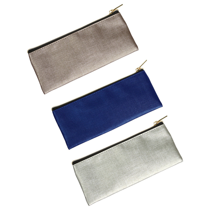 Estuchera fabricada en poliéster reciclado y curpiel. Con cierre color dorado.