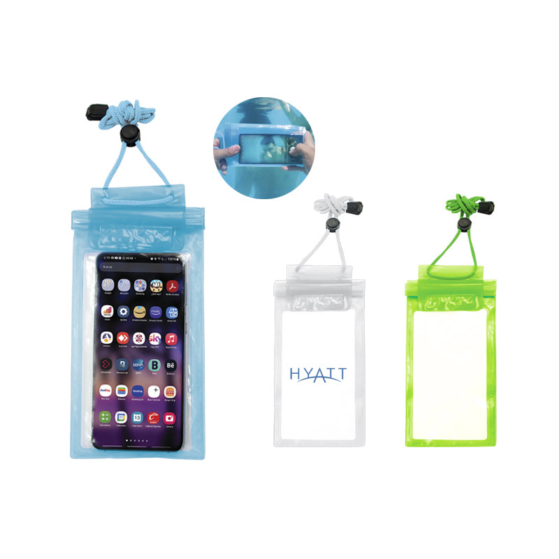 Funda a prueba de agua con 3 cierres herméticos y tira de pegol, con cinta para colgar y broche ajustable. A través de la superficie de la funda puedes utilizar el teléfono desde el exterior.