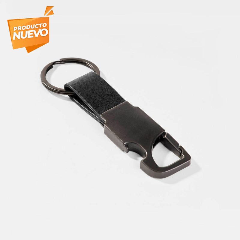 Llavero metálico con correa de curpiel. Mantiene tus llaves organizadas e incluye un prático destapador. Además, su gancho tipo mosquetón te permite llevar tus accesorios preferidos de forma segura y accesible. Compacto y versátil, perfecto para quienes buscan un accesorio que combine elegancia y utilidad.