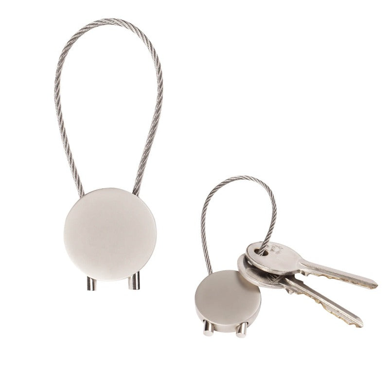 Llavero metálico circular con correa desmontable. Incluye caja.