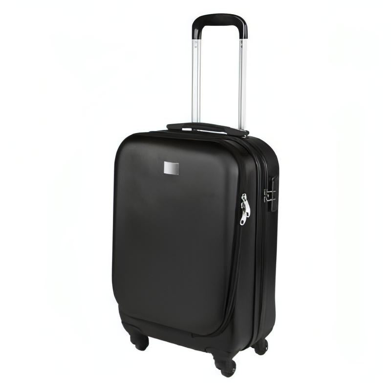 Maleta trolley 4 ruedas. Cierre frontal con espacio para laptop y organizador de documentos. Cierre principal con 2 compartimentos internos. Placa metálica removible para fácil grabado y candado de seguridad con combinación de 3 dígitos. Incluye cables cargadores para conectar batería auxiliar, dispositivos electrónicos y reproductor de audio. Incluye doble puerto de USB, 1 puerto de Micro USB y entrada de audio de 3.5 mm. (No Incluye batería auxiliar).