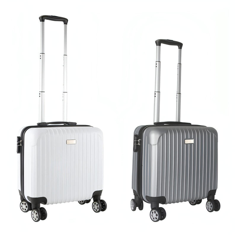 Maleta rígida de viaje tipo carry on con ruedas fabricada en ABS con mango retráctil de aluminio interiores en poliéster, chapa de seguridad, placa metálica, compartimento interior con cierre y tensor para ropa.