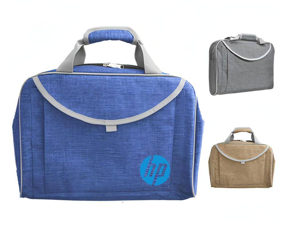 Bolsa tipo maletín con espacio para laptop de hasta 15 pulgadas, interior acolchado que protege el equipo, con compartimento frontal para guardar cables
