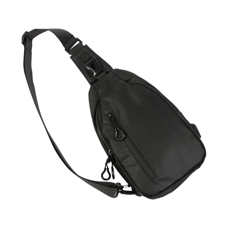 Mochila de hombro fabricada en poliéster con apariencia de curpiel, con 3 bolsillos, uno en la parte frontal el cual es ideal para tarjetas u objetos de tamaño compacto, los otros dos compartimientos son mas amplios, ideales para guardar tu cartera o tu celular. Su correa ajustable permite utilizarla como pechera o en la espalda.