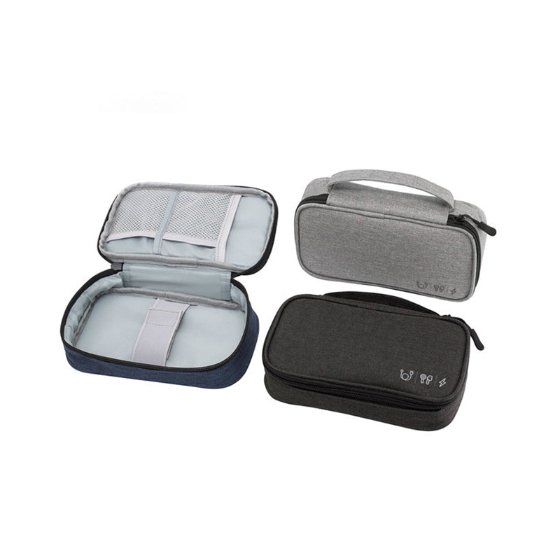 Organizador de cables. Estructura acolchada. Asa para transportar. Compartimento principal con cierre con tirador engomado. Interior forrado. En uno de sus lados cuenta con un bolsillo principal y dos pequeños de red, y en el lado contrario tiene un elástico con velcro multipropósito.