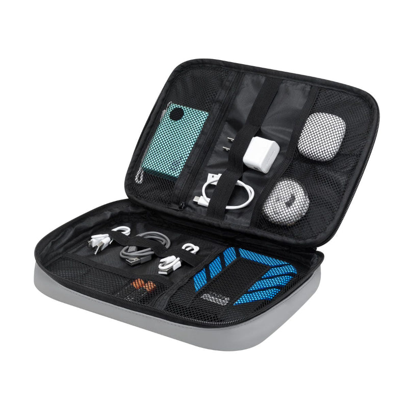 Estuche para llevar cargadores, cables y otros accesorios electrónicos de manera segura, evitando enredos y daños. Incluye un bolsillo frontal con cierre y asa lateral para transportar fácilmente. En su interior, agrega dos bolsillos de malla con cierre, 5 compartimentos de malla y dos bandas elásticas para mantener tus accesorios fijos en todo momento. Su diseño elegante y su material curpiel, lo hacen perfecto para el uso diario, ya sea en el trabajo, de viaje o en casa.