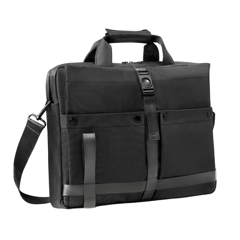 Portafolio ejecutivo con múltiples bolsillos organizadores, ideal para llevar todo lo necesario en un solo accesorio. Su bolsillo principal con cierre, permite guardar una laptop de hasta 15''. Bolsillo frontal, con cierre de velcro y broche de plástico, ideal para mantener seguras tus pertenencias de valor, además de dos bolsillos para objetos más pequeños. Asa superior que se une por medio de velcro y un asa removible para hombro con broches metálicos. En la parte posterior, contiene una banda para transportar fácilmente en trolley.