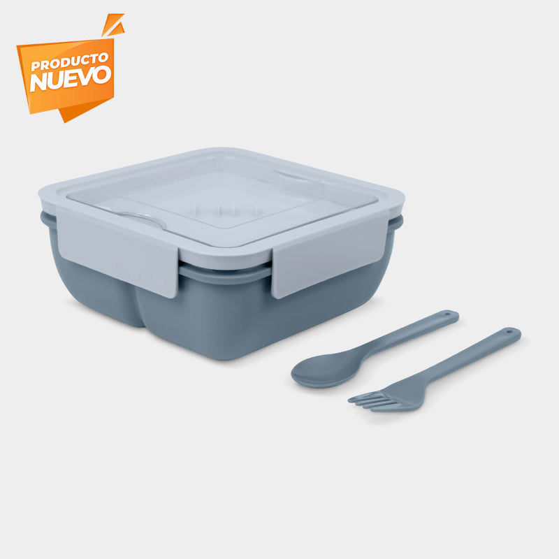 Contenedor de alimentos compacto y versátil con divisor interno para mantener tus alimentos seguros y organizados. Tapa con cierre hermético de cuatro pestañas para evitar derrames. Sobre tapa con compartimento integrado que incluye un tenedor y una cuchara. Su innovador diseño, ofrece una solución práctica para transportar tus alimentos a cualquier lugar. Apto para microondas.