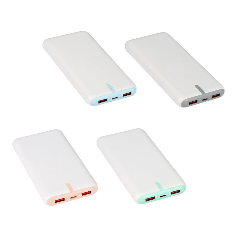 Power bank fabricado en plástico ABS, capacidad de 5000 mAh, entrada tipo C 5V-2A y salida tipo USB 5V-2A. Diseño ergonómico que lo hace adecuado para viajes.