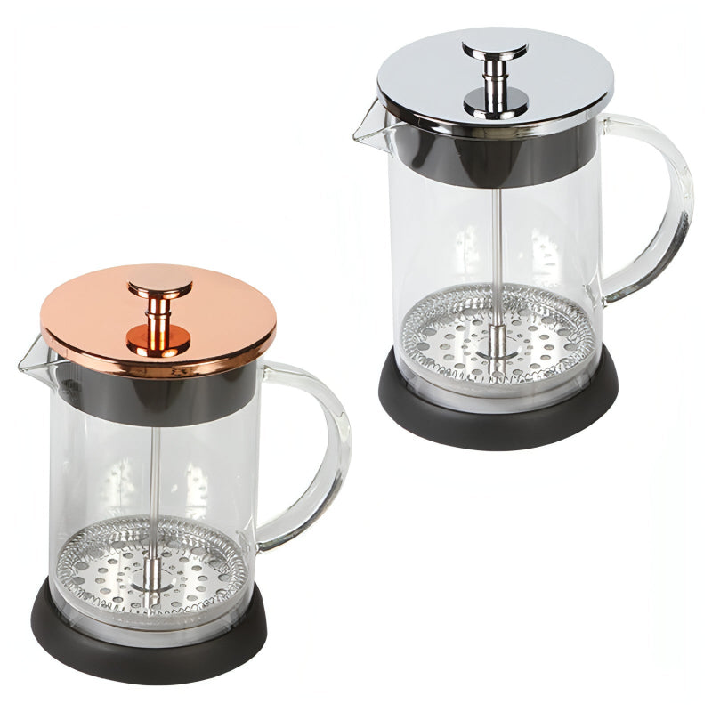 Prensa francesa con detalles en plástico y acero inoxidable, la jarra de vidrio es altamente resistente al calor. Capacidad de 800 ml.
