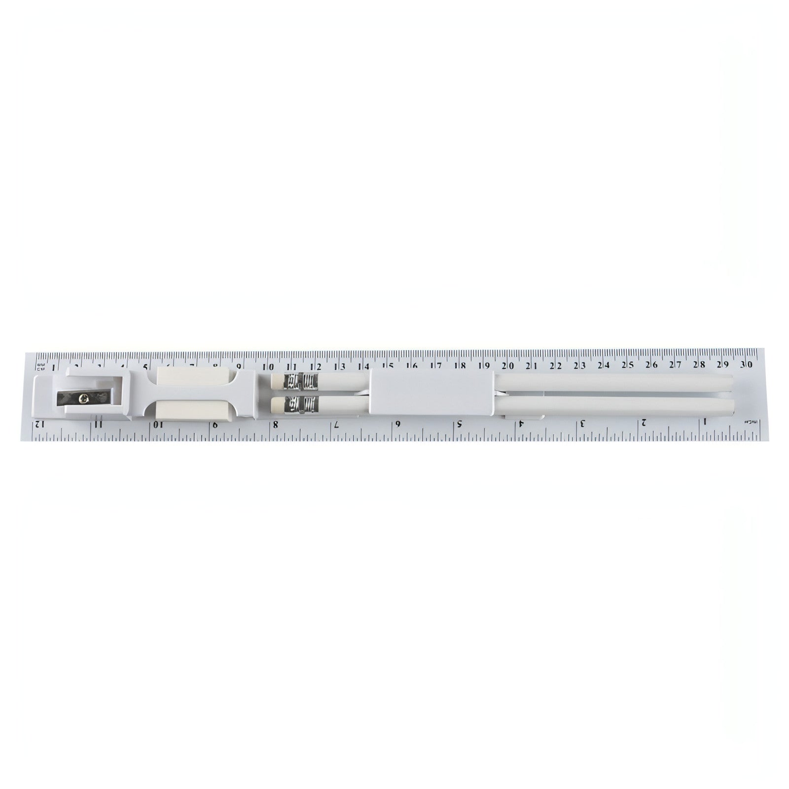 Incluye 2 lápices, 1 borrador, 1 sacapuntas y regla de 30 cm.
