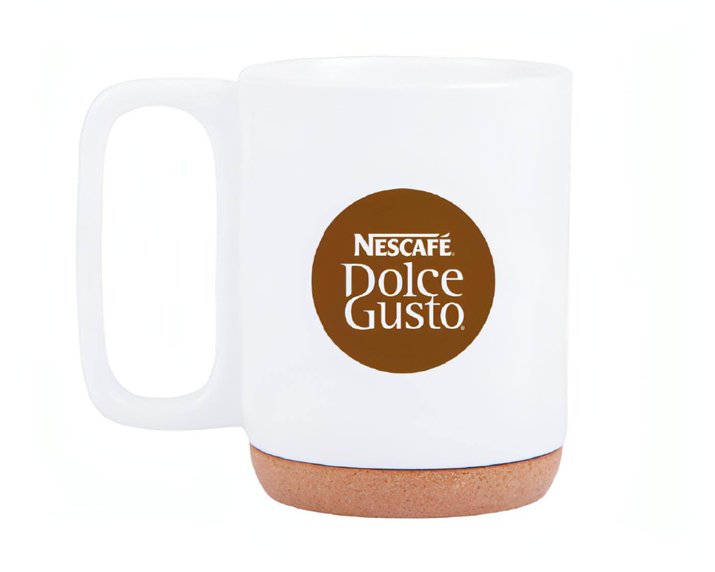 Tarro blanco de cerámica con base de corcho y asa ergonómica para sujetarla más fácilmente. Acabado brillante.