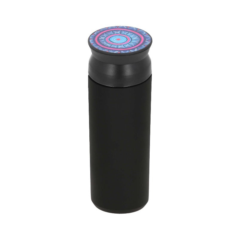 Termo de acero inoxidable y doble pared insulado al vacío con acabado rugoso. EDICIÓN ALEBRIJE.