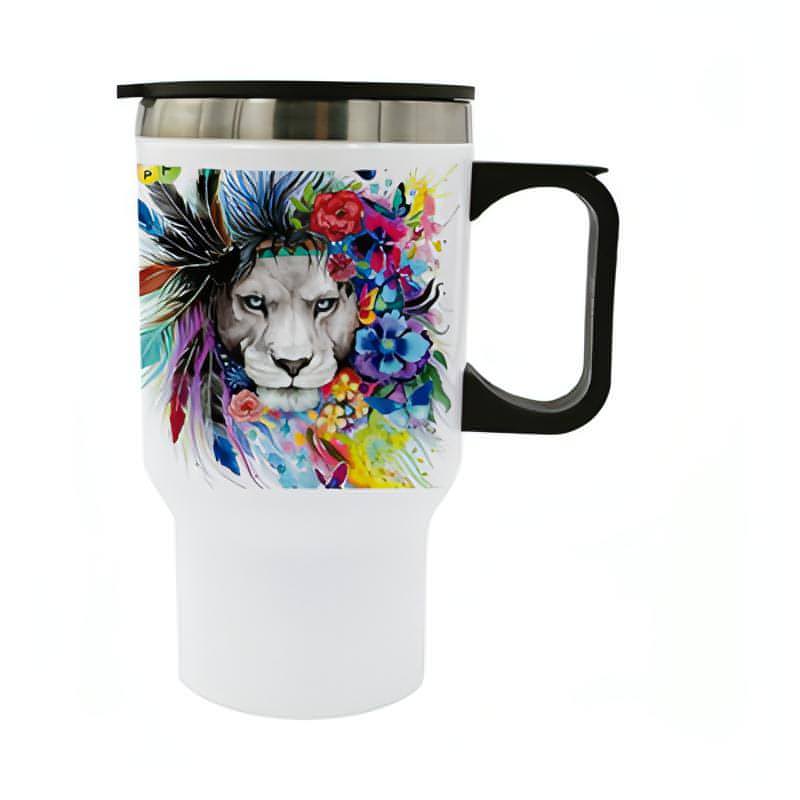 Termo de acero inoxidable sublimable con tapa de presión y válvula de seguridad.