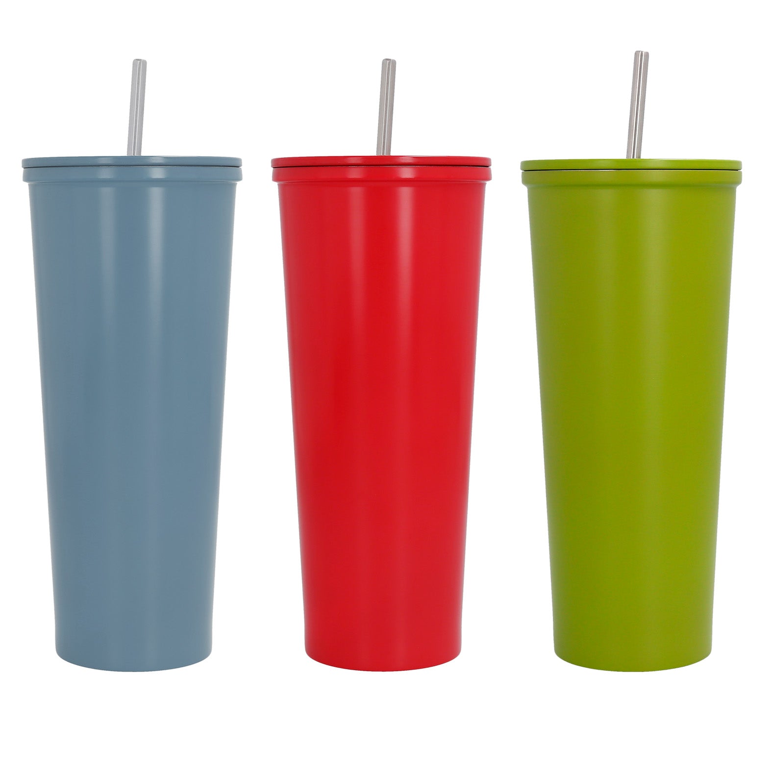 Termo de acero inoxidable con doble pared insulado al vacío. Incluye popote metálico.