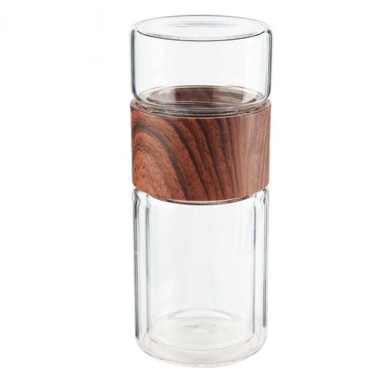 Termo de vidrio de doble pared para bebidas calientes y frías. Evita quemaduras con su doble vidrio y tapa de rosca que evita derrames. Contiene una separación de infusor para té de acero inoxidable removible. Su colador y doble vaso permiten preparar infusiones.