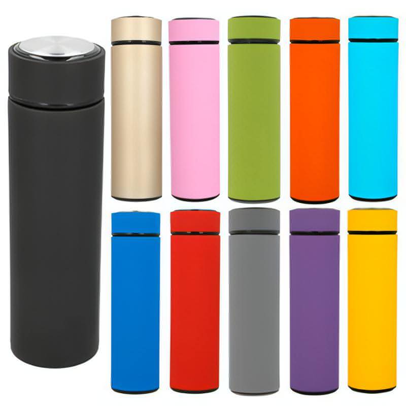 Termo de doble pared acabado rubber de acero inoxidable, con colador.