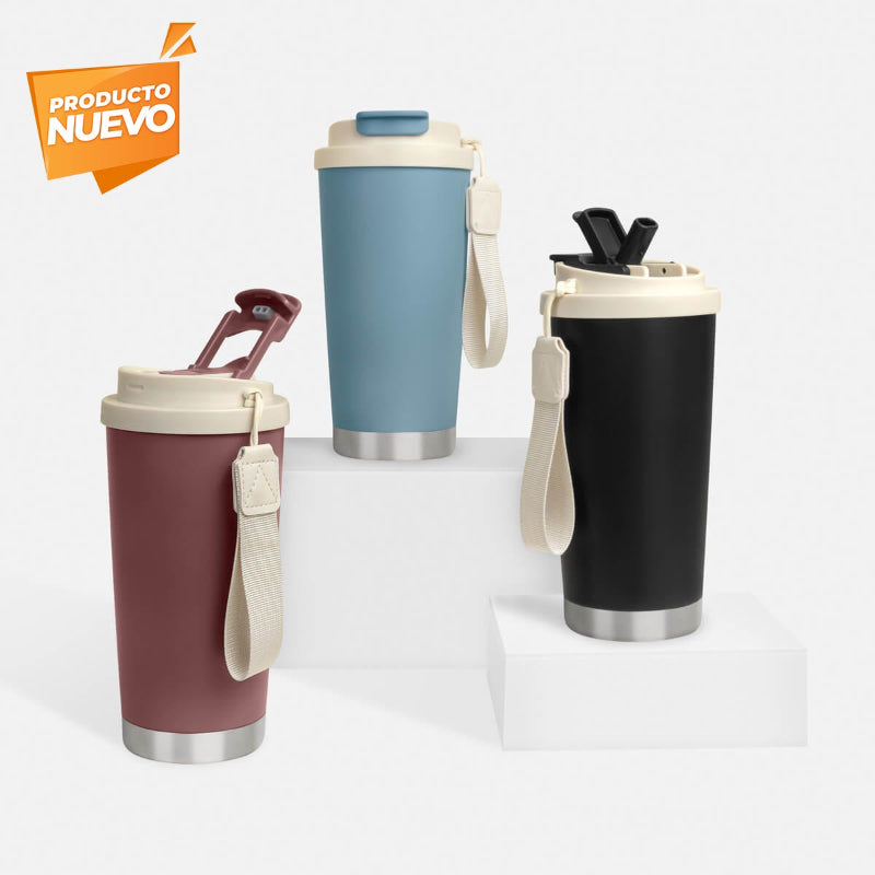 Termo doble pared. Cerrado al vacío. Pared interna y externa acero inoxidable. Tapa de plástico con sistema de rosca y doble función que incluye, boquilla sencilla con sobretapa de cierre push y boquilla para popote con sistema plegable, para mantenerlo seguro y limpio. Su asa lateral permite llevarlo contigo facilmente y le proporciona un toque de modernidad. Mantiene la temperatura caliente por 6 hrs y la temperatura fría por 8 hrs. Capacidad de 17 Oz. Base de 7.3 cm de diámetro. Incluye popote de plástico y caja individual.