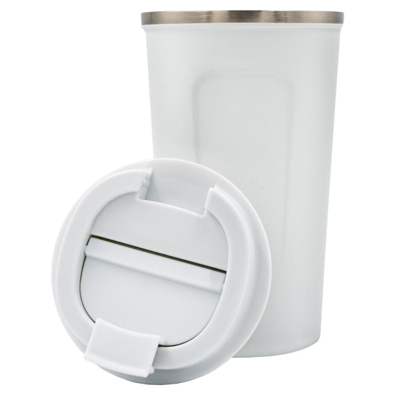 Vaso termo fabricado en acero inoxidable de grado alimenticio, con doble pared y aislamiento al vacío.