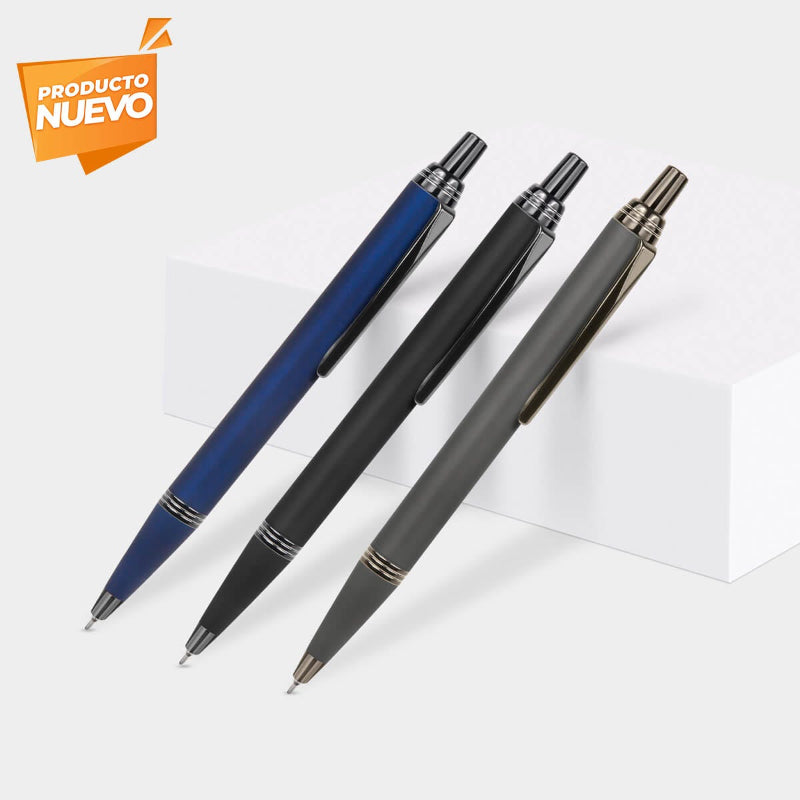 Bolígrafo metálico doble acabado mate en el cuerpo y detalles cromados. Mecanismo pulsador.